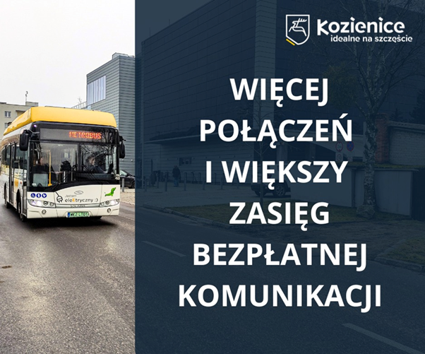 Gmina Kozienice rozszerza system bezpłatnej komunikacji zbiorowej, oferując mieszkańcom jeszcze więcej połączeń i większy zasięg. Z darmowych przejazdów mogą korzystać mieszkańcy gminy, uczniowie oraz studenci.