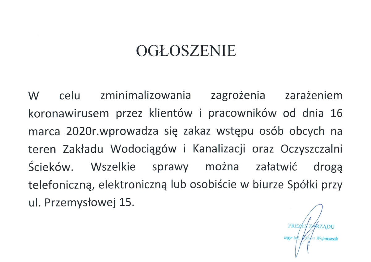 Stacji Uzdatniania Wody oraz obiektów przepompowni ścieków;